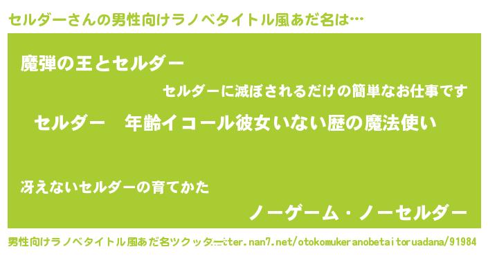 | ヒーロー風カッコイイあだ名 | 『仮面セルダー』『正義の使者セルダー』 |