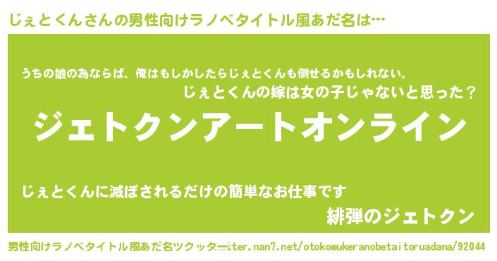 | 胡散臭い通販商品みたいなあだ名 | 『億万長者になれるブレスレット…その名も「じぇとくん」』 |