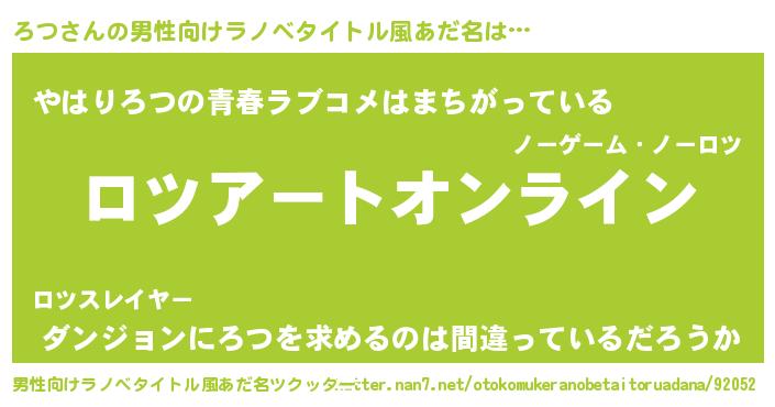 | 女子向けラノベタイトル風あだ名 | 『ろつ姫と円卓の騎士』『死神ろつの再婚』 |
