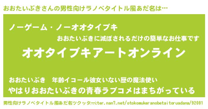 | 肩書あだ名 | 『おおたいぶき御曹司』 |