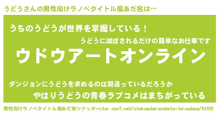 | 胡散臭い通販商品みたいなあだ名 | 『億万長者になれる霊験あらたかなお札…その名も「うどう」』 |
