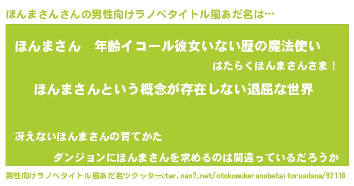 | 女子向けラノベタイトル風あだ名 | 『異世界で失敗しない100のほんまさん』 |