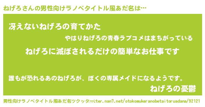 | 胡散臭い通販商品みたいなあだ名 | 『億万長者になれる霊験あらたかなお札…その名も「ねげろ」』 |