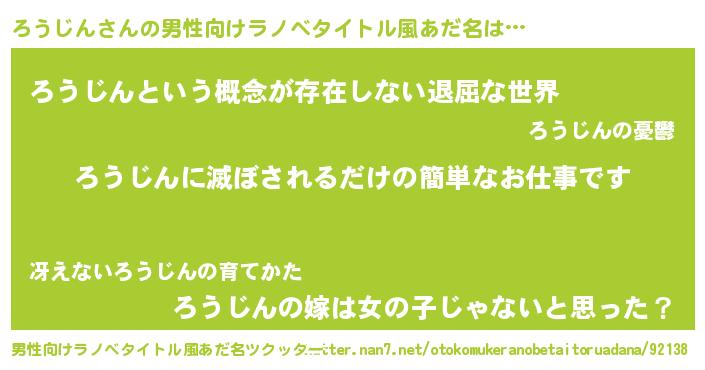 | ヘコむあだ名 | 『ろうじん(笑)』『ろうっちょ』 |
