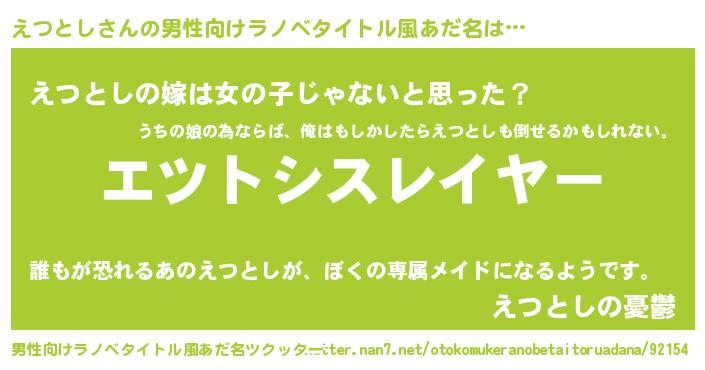 | 胡散臭い通販商品みたいなあだ名 | 『信頼と実績のネックレス…その名も「えつとし」』 |