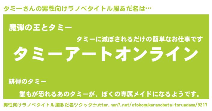 | 胡散臭い通販商品みたいなあだ名 | 『億万長者になれる霊験あらたかなお札…その名も「タミー」』 |