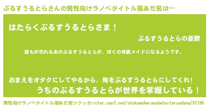 | ヒーロー風カッコイイあだ名 | 『ネオプルスウルトラ』『暗黒騎士プル』 |