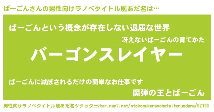 | 胡散臭い通販商品みたいなあだ名 | 『絶対に幸福をもたらす水素水…その名も「ばーごん」』 |