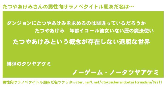 | ヘコむあだ名 | 『たつやあけみ(小並感)』『たつっぺ』 |