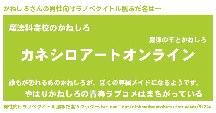 | 欧米人風あだ名 | 『マイケルかねしろ』 |