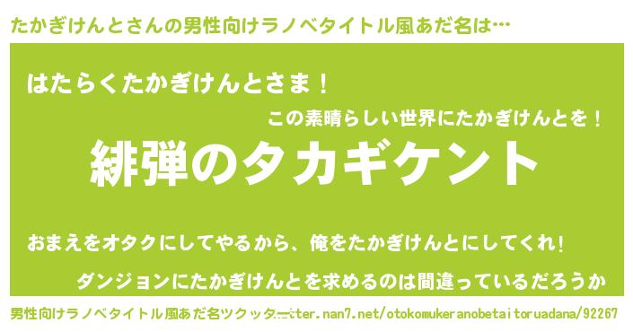 | 女子向けラノベタイトル風あだ名 | 『シンデレラたかぎけんと家の靴箱館』 |