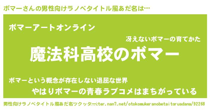 | 女子向けラノベタイトル風あだ名 | 『ボマーアンティーク』 |