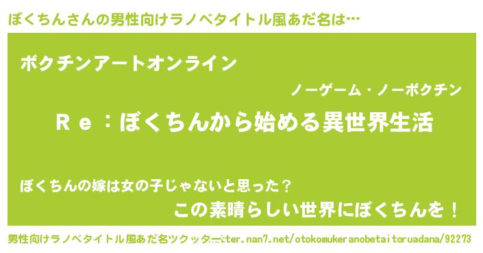 | 女子向けラノベタイトル風あだ名 | 『闇のぼくちん』『ぼくちん恋絵巻』 |