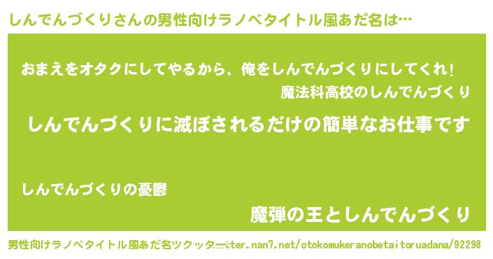 | ヒーロー風カッコイイあだ名 | 『慈愛の使者しんでんづくり』 |