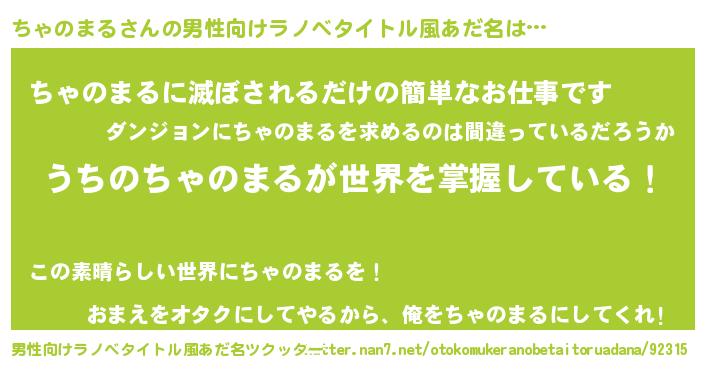 | 伝説のあだ名 | 『救世主となる占い師ちゃのまる』 |