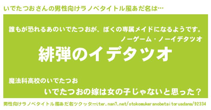 | ヒーロー風カッコイイあだ名 | 『ネオイデタツオ』『幻影騎士イデ』 |