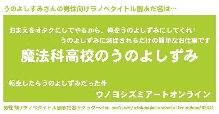 | 女子向けラノベタイトル風あだ名 | 『うのよしずみなんてお断りですっ。』 |