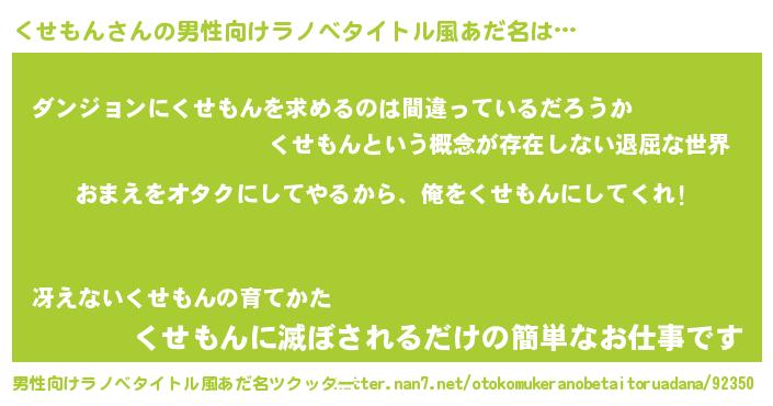 | 女子向けラノベタイトル風あだ名 | 『くせもん恋絵巻』『くせもんの契約王妃』 |