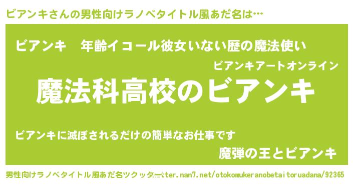 | ヒーロー風カッコイイあだ名 | 『ウルトラ戦士ビアンキ』『仮面ビアダー』 |