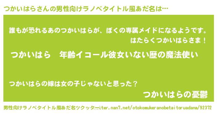 | 女子向けラノベタイトル風あだ名 | 『つかいはらの玉の輿計画!』 |