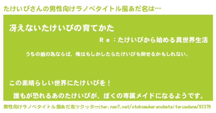 | 胡散臭い通販商品みたいなあだ名 | 『運命の人と巡り会える高級そうな壺…その名も「たけいぴ」』 |