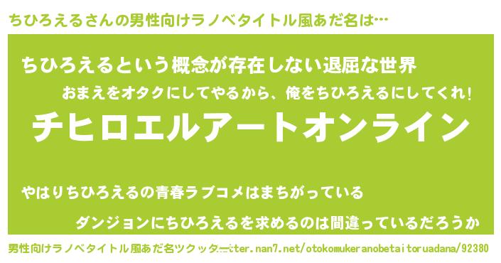 | 胡散臭い通販商品みたいなあだ名 | 『モテモテ間違いなし霊験あらたかなお札…その名も「ちひろえる」』 |