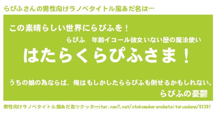 | 意味不明あだ名 | 『住所不定無職らぴふ(13歳)』 |