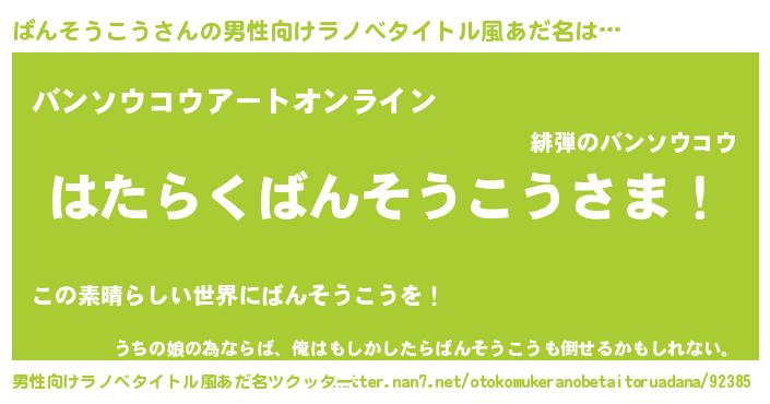 | ヒーロー風カッコイイあだ名 | 『スーパーバンソウコウ』『仮面バンダー』 |