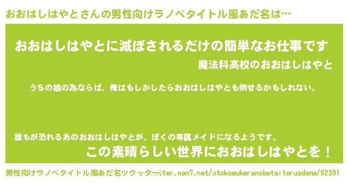 ファンタジー風あだ名 | 『エターナルオオハシハヤトー』 |