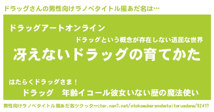 | 胡散臭い通販商品みたいなあだ名 | 『モテモテ間違いなしブレスレット…その名も「ドラッグ」』 |
