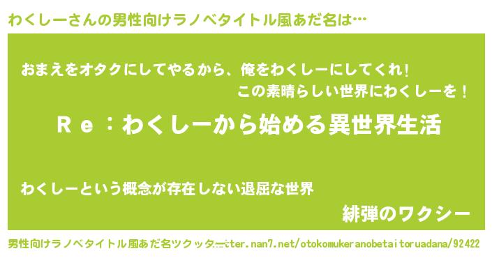 | 女子向けラノベタイトル風あだ名 | 『闇のわくしー』 |