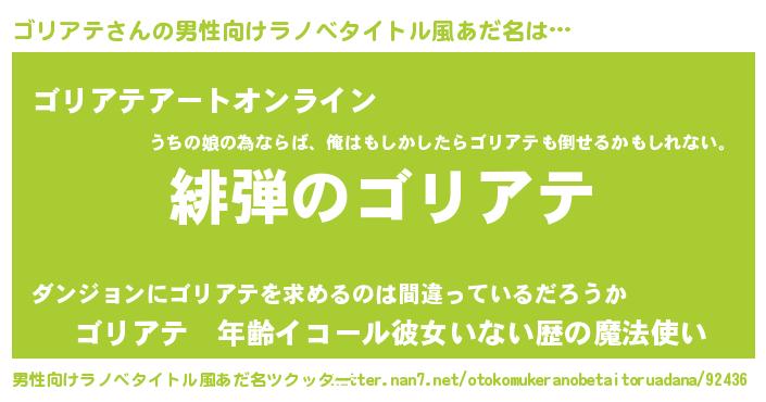 | 女子向けラノベタイトル風あだ名 | 『シンデレラゴリアテ家の靴箱館』 |