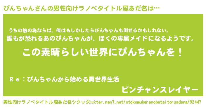 | 意味不明あだ名 | 『住所不定無職ぴんちゃん(62歳)』 |