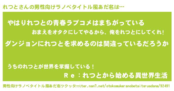 | 女子向けラノベタイトル風あだ名 | 『れつとの卵を拾いまして』『闇のれつと』 |