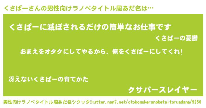 | 女子向けラノベタイトル風あだ名 | 『くさぱー恋絵巻』 |