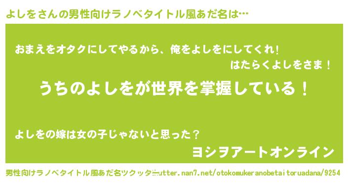 | ヘコむあだ名 | 『よしにー』『よしっぺ』『なまこ酢』 |