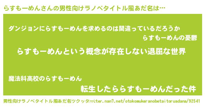 | 胡散臭い通販商品みたいなあだ名 | 『絶対に幸福をもたらす健康食品…その名も「らすもーめん」』 |