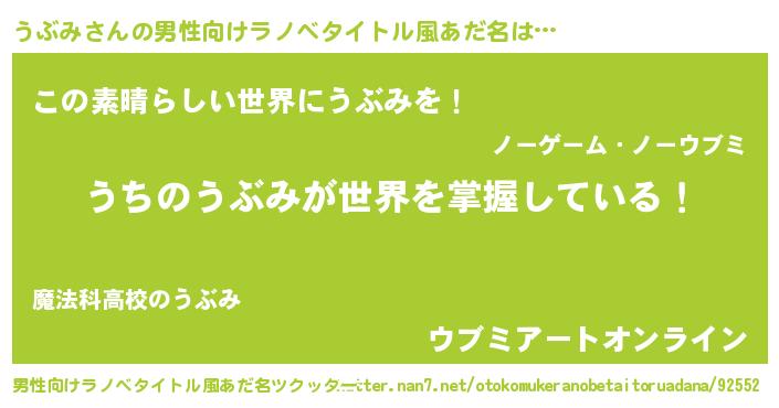 | 意味不明あだ名 | 『住所不定無職うぶみ(43歳)』『自称うぶみ』 |
