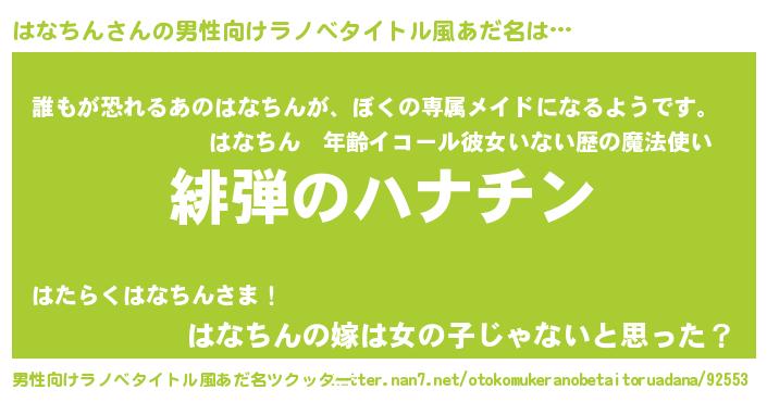 | ヒーロー風カッコイイあだ名 | 『ネオハナチン』『天弓騎士ハナ』 |