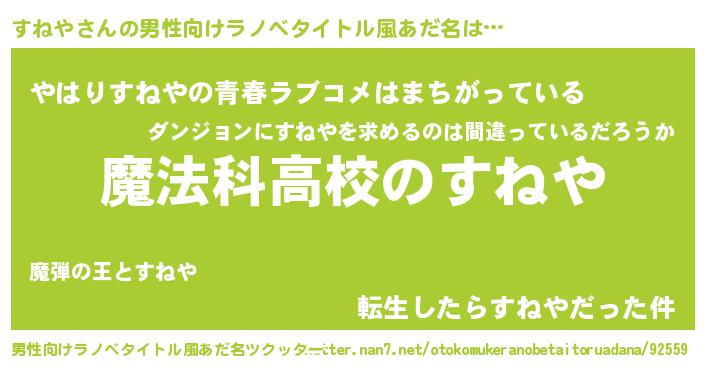 | 女子向けラノベタイトル風あだ名 | 『すねやなんてお断りですっ。』 |