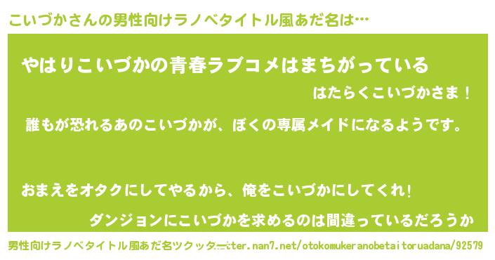 | 女子向けラノベタイトル風あだ名 | 『異世界でカフェこいづかを開店しました。』 |