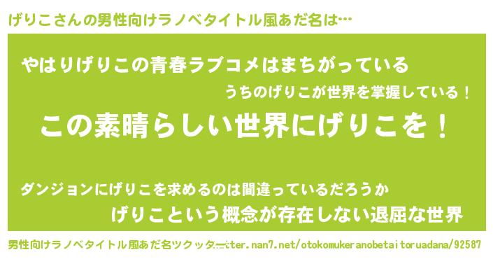 | 意味不明あだ名 | 『住所不定無職げりこ(41歳)』 |