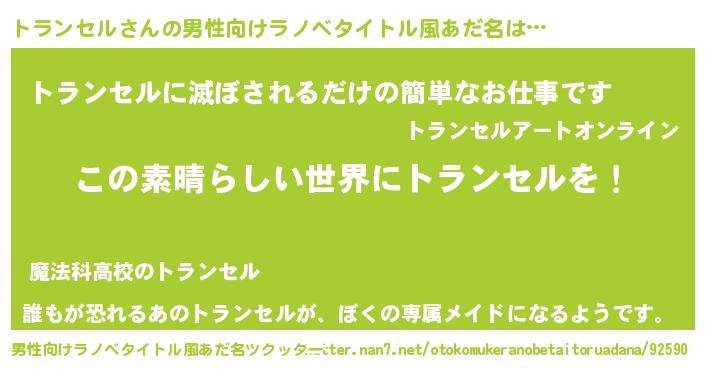 | 意味不明あだ名 | 『住所不定無職トランセル(68歳)』 |