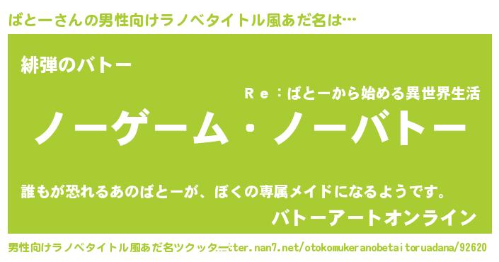 | 女子向けラノベタイトル風あだ名 | 『ばとー恋絵巻』『ばとー姫と円卓の騎士』 |
