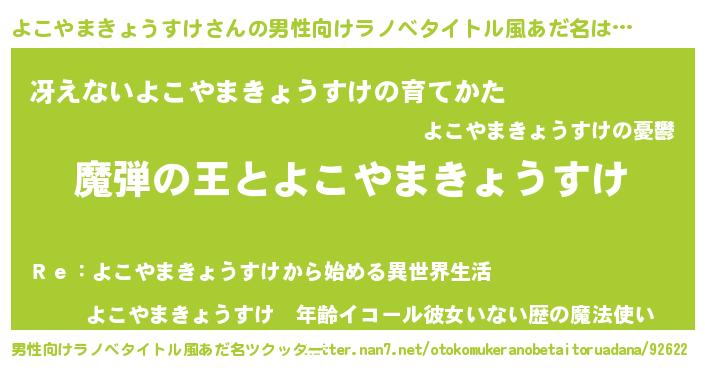 | 意味不明あだ名 | 『住所不定無職よこやまきょうすけ(39歳)』 |