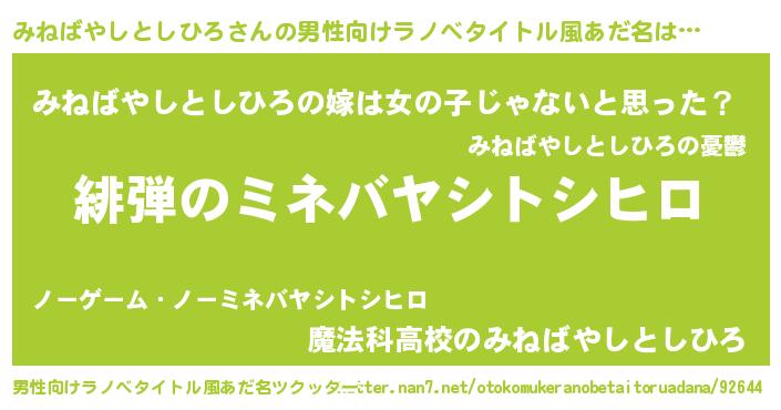 | 女子向けラノベタイトル風あだ名 | 『シンデレラみねばやしとしひろ家の靴箱館』 |