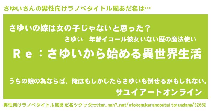 | 女子向けラノベタイトル風あだ名 | 『闇のさゆい』『さゆいの卵を拾いまして』 |