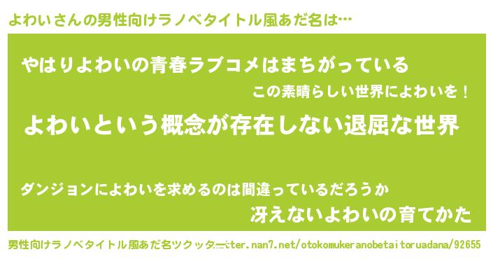 | 胡散臭い通販商品みたいなあだ名 | 『絶対に幸福をもたらす健康食品…その名も「よわい」』 |