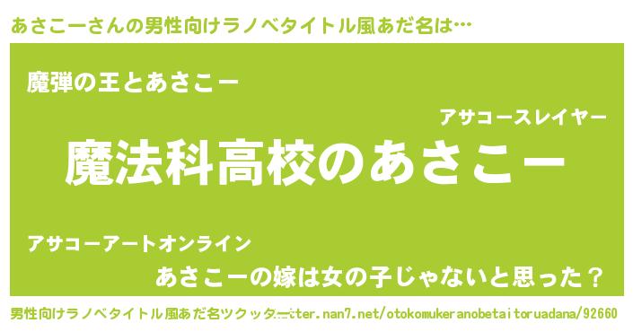 | 女子向けラノベタイトル風あだ名 | 『あさこーアンティーク』 |