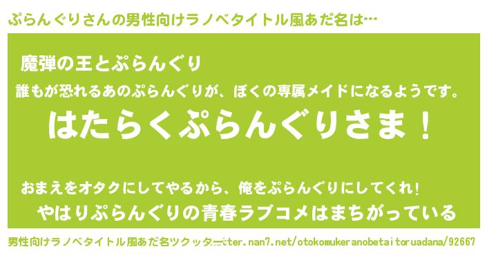 | ヒーロー風カッコイイあだ名 | 『仮面プラダー』『ネオプラングリ』 |